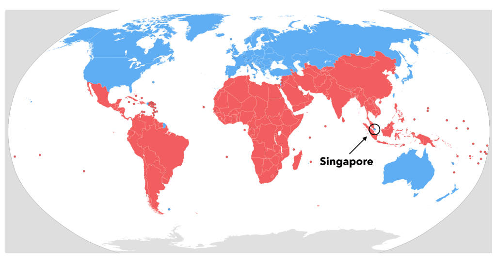As alluded to in the title of the film, while additionally being mentioned before, the Young family is extremely rich. The theme of wealth is present throughout the entire film, which relates to the idea of The Global North and South Divide. This essentially is an imaginary line that divides the wealthy developed ‘rich’ countries and the developing ‘poor’ countries. Although Singapore is located amongst counties in the Global South, it is actually considered to be a part of the Global North. In fact, Singapore has a higher GDP per capita that Australia, sitting at $85,000 AUD compared to $80,000 AUD, respectively.
